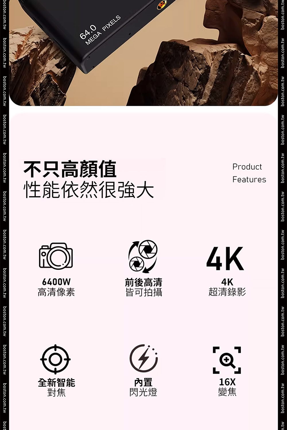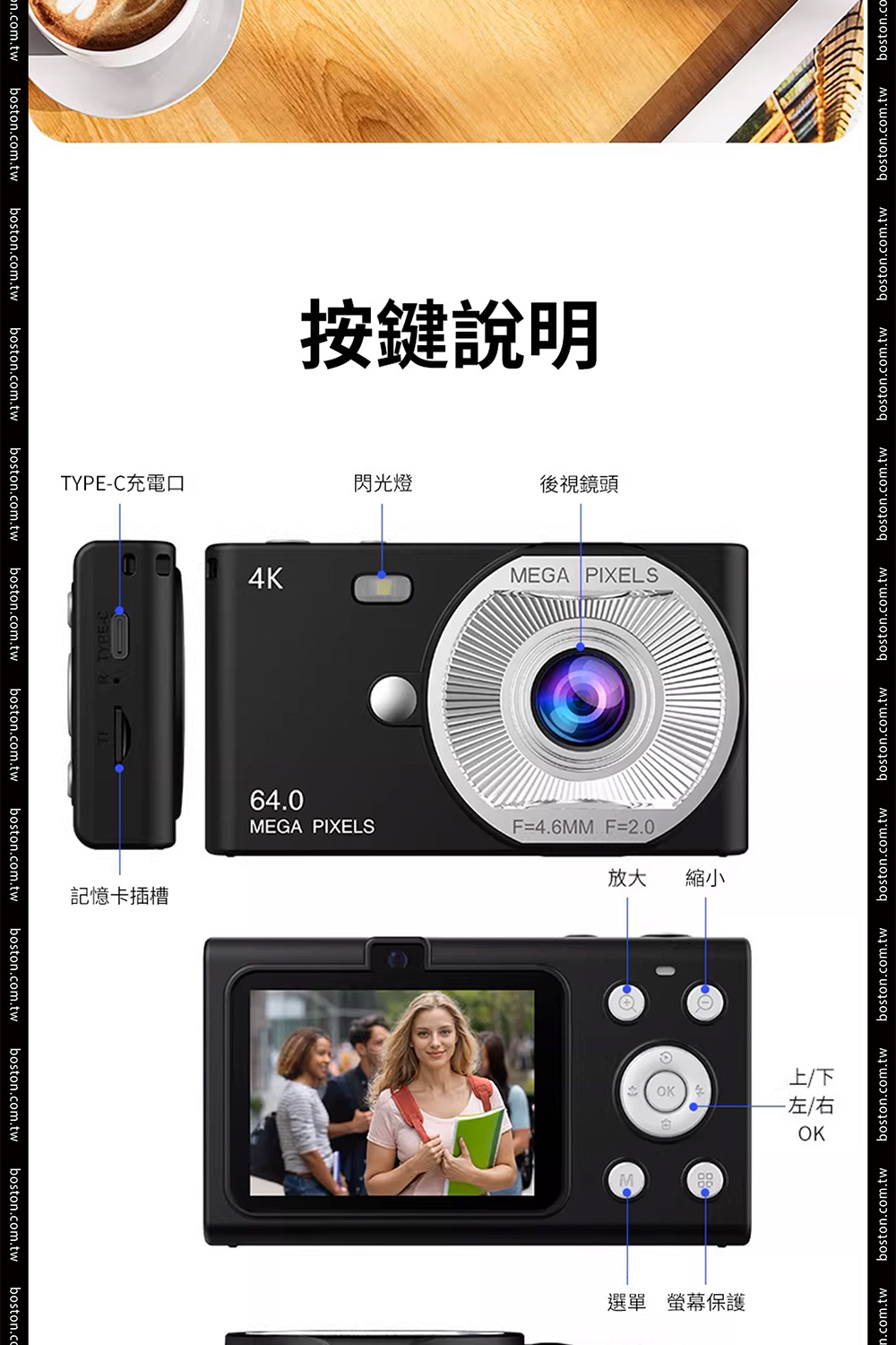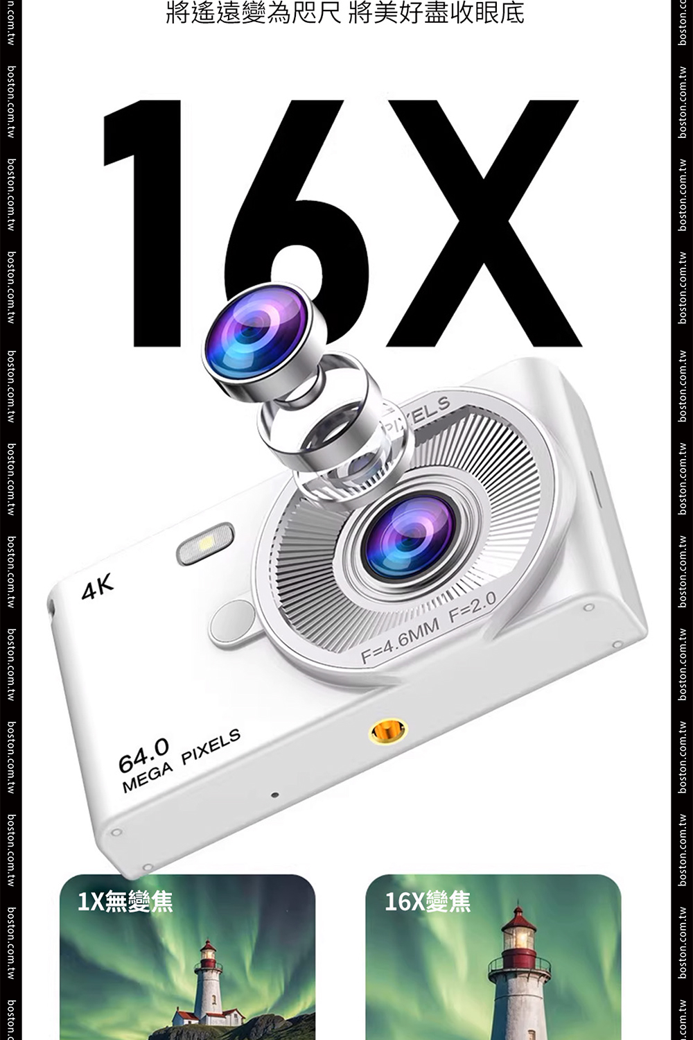 品名:波士頓相機4K懷舊風高畫質CCD數位相機64MP